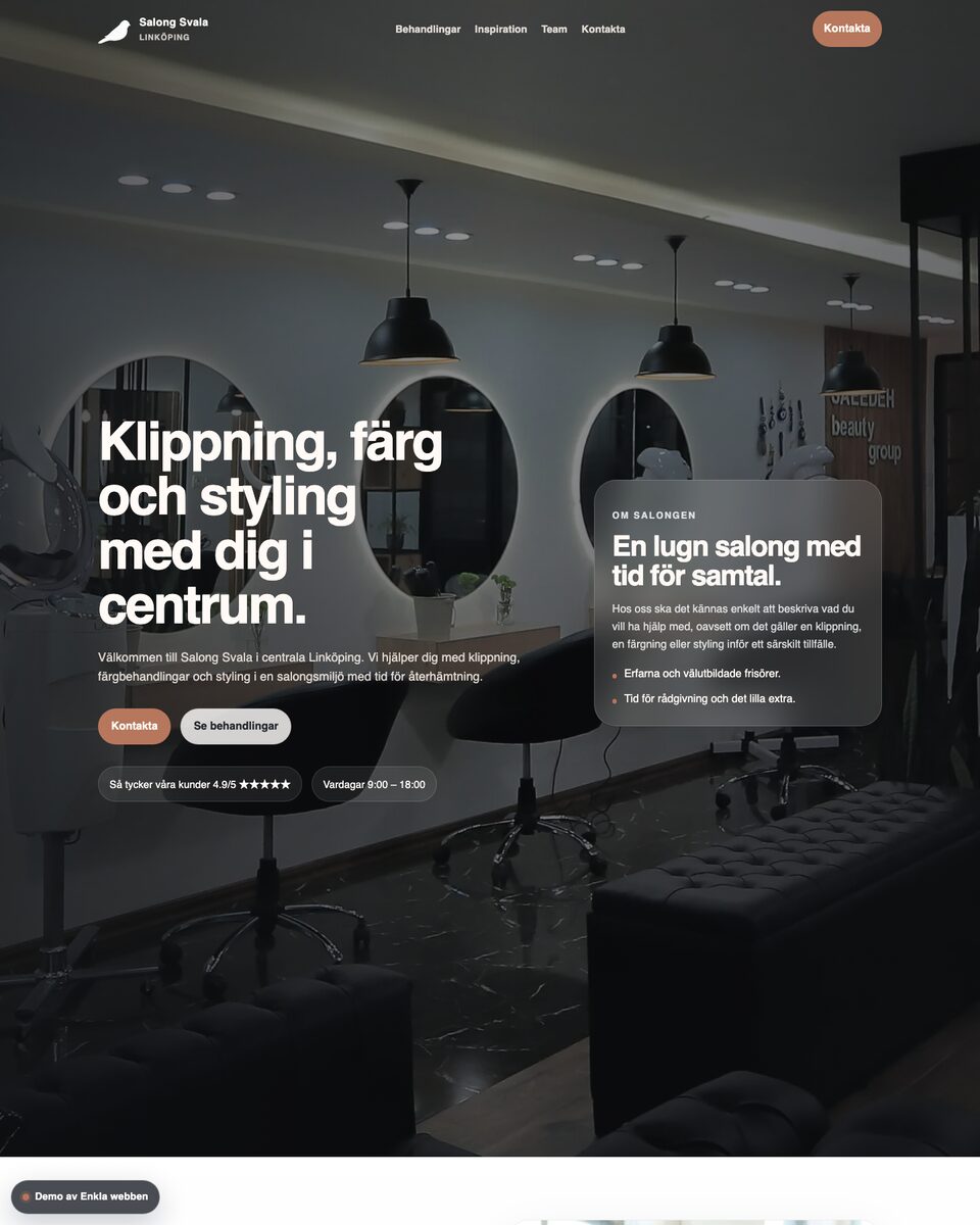 Jag byggde Enkla webben för företagare som vill ha hemsida och mejl på egen domän – men slippa långa processer, teknikstrul och stora kostnader. Du får hjälp av mig att hitta rätt struktur och budskap, baserat på erfarenhet av vad som går hem hos både användare och sökmotorer.