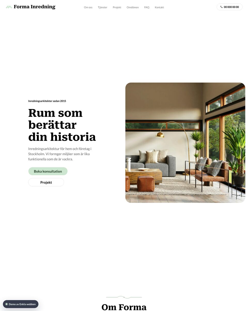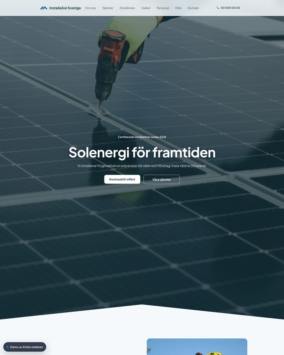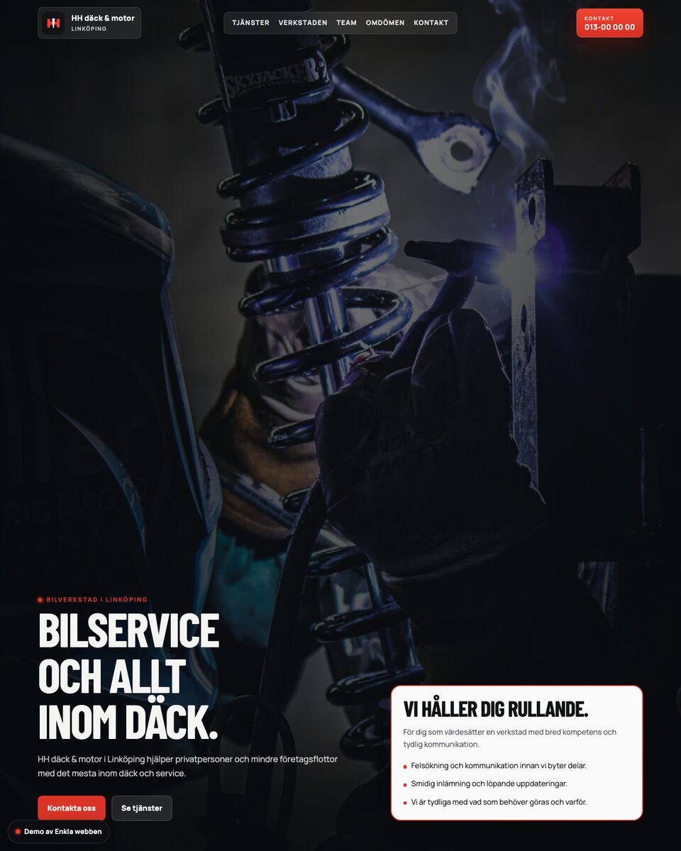 Du väljer fritt mellan beprövade grundteman, sektioner och innehåll – eller får konkreta förslag på hur just ditt företag kan presenteras. En snabb och tydlig leverans, med justeringar tills du är nöjd.